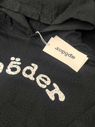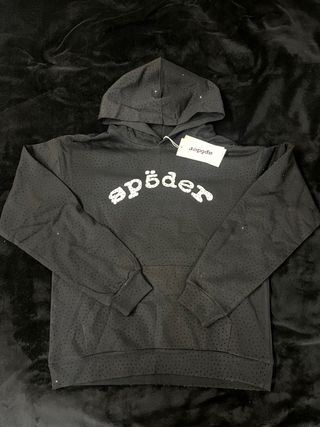 Sudadera con capucha y estampado de telaraña. - Diseño con texto y detalles de estrellas. - Bolsillo frontal.