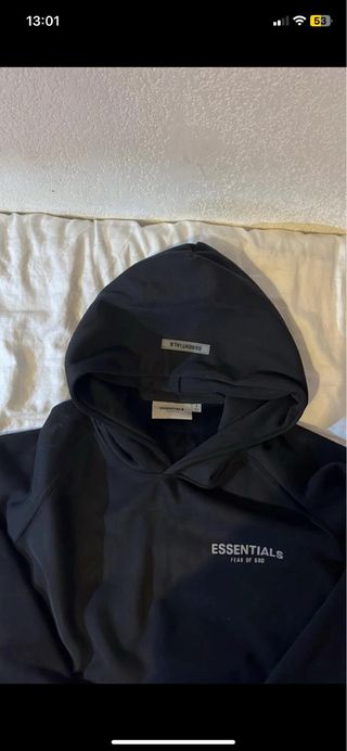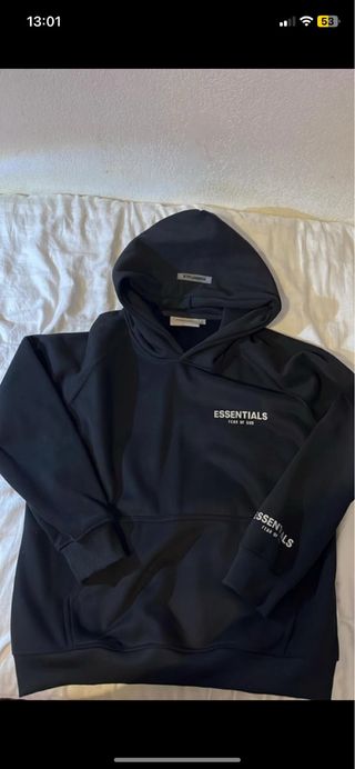 Sudadera con capucha de la marca Essentials. - Diseño en color negro. - Logo de la marca en el pecho y manga.