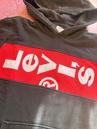 Sudadera con capucha y bolsillo frontal. - Diseño de bloques de color. - Logo de Levi's en el pecho. Le falta el cordon de la capucha Esta usada pero buen estado Estilo retro NY
