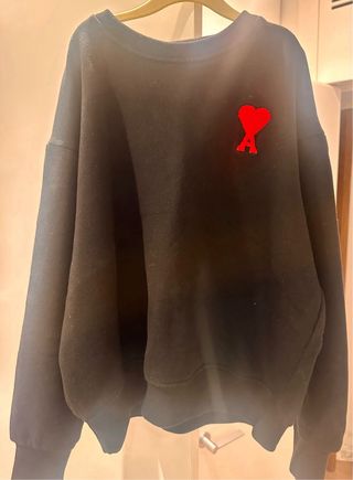 Sudadera de AMI Paris en color negro. Presenta un distintivo logo de corazón rojo con la A en el pecho. Muy buen estado - Cuello redondo. - Puños y bajo elásticos.