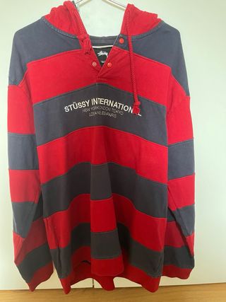 Suéter con capucha de la serie Stranger things talla grande . Ancho hombros 60 cm, largo 59 cm. Está muy bien pero tiene un punto rojo que apenas se ve en una manga ( mira foto)