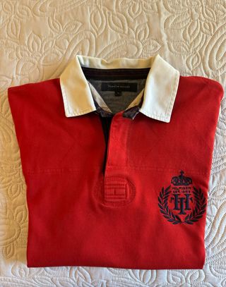 Preciosa sudadera de la marca Tommy Hilfiger. Es de color rojo y tiene un diseño clásico. - Talla: M - Estado: Está en perfectas condiciones, aunque la etiqueta de dentro está ligeramente rasgada (ver foto)