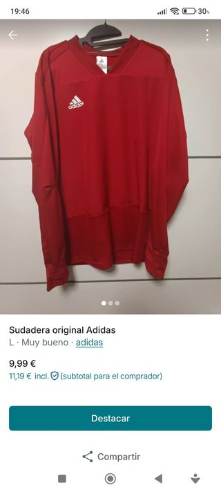 Sudadera roja de manga larga, original Adidas. En perfecto estado.