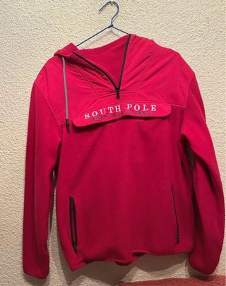 Chaqueta deportiva roja con cremallera de la marca Cedar Wood State talla S. Estado: Buen estado. Estilo: Diseño casual con capucha. Detalles: - Bolsillos laterales funcionales. - Puños y cintura elásticos para un mejor ajuste. - Detalles en blanco en las mangas. Precio dispuesto a negociar. Pregunta sin compromiso si necesitas medidas. Hogar sin humo ni mascotas. Envío rápido y seguro. Descuento por lotes