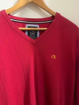 Jersey de punto con cuello pico. - Logo bordado en la parte delantera. - Puños y bajo de canalé. -Marca: Misson Modern Classics (marca similar a la vespita, santamarta, el ganso...)