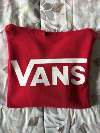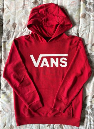 Sudadera con capucha de color rojo y el icónico logo de Vans en blanco. - Diseño con capucha. - Bolsillo frontal tipo canguro.