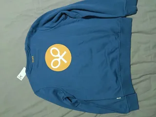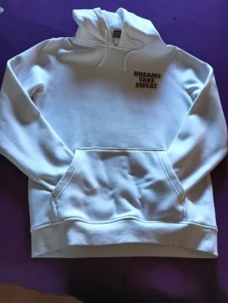 Sudadera con un diseño estampado en toda la prenda. Pone que es talla M pero talla bastante grande, como una L. - Estampado de zapatillas con alas. - Parche con logo en el pecho. Me la he puesto sólo una vez.