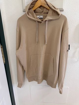 Sudadera con capucha de Stone Island en color beige. Un básico para tu armario. - Logo de la marca en la manga. - Bolsillo tipo canguro delantero. - Cordones ajustables en la capucha.
