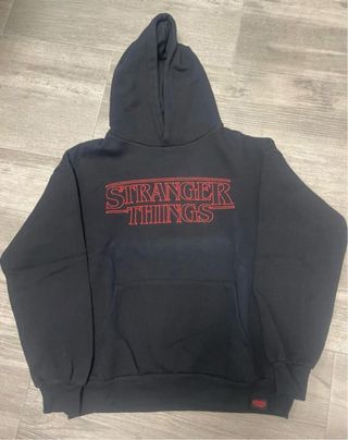 Sudadera con capucha de Stranger Things. - Diseño con el logo de la serie bordado en rojo. - Bolsillo frontal tipo canguro.