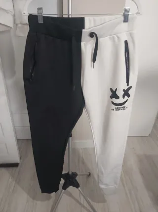 Conjunto de chándal de dos piezas con un diseño bicolor llamativo. Sudadera con capucha. Medidas aproximadas: Pantalon XL cintura de 40 a 62 cm. Largo 101 cm. Chaqueta XXL sisa 59 cm. Largo 74 cm