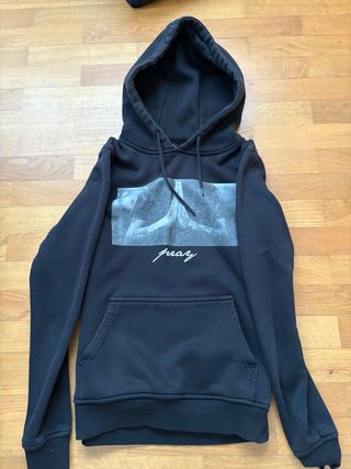 Sudadera con estampado gráfico y texto. - Diseño frontal con imagen y la palabra pray. - Capucha con cordones. - Bolsillo canguro.