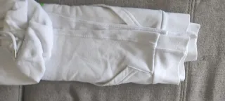 Sudadera blanca con detalles de color en cuello y puños. - Diseño con logo GRMY en el pecho. - Tejido ligero y arrugado. - Puños y cuello elásticos con diseño de ondas. - Cordón ajustable en el bajo .Sudadera GRMY ajustable en cintura. Forrada en algodón por dentro. Prenda de entretiempo. Dibujo de dragón en espalda. Como nueva a estrenar. Medidas: distancia entre hombros: 49 cm, entre axilas: 48 cm cintura ajustable: 38 cm. Largo de la prenda desde hombros hasta cintura: 69 cm. Largo de la manga desde hombros 65 cm y desde axila 56 cm.