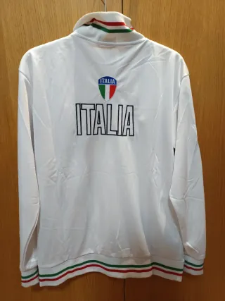 Sudadera blanca con detalles de Italia. - Diseño con el texto ITALIA en azul. - Bandera italiana en la parte frontal. - Ribetes en cuello y puños con los colores de Italia (verde, blanco y rojo).