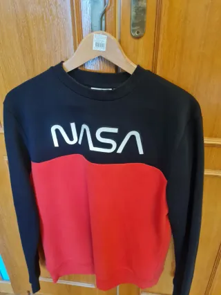 Sudadera con el logo de NASA. - Diseño bicolor. - Parte superior negra. - Parte inferior roja.