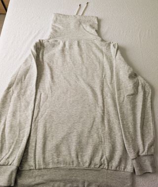 Sudadera con capucha de color gris. - Tejido suave y cómodo. - Bolsillo frontal tipo canguro. - Capucha ajustable con cordones. Precio negociable.