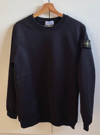 Sudadera clásica de Stone Island en color negro. Presenta el icónico logo de la marca en la manga. - Diseño con cuello redondo. - Puños y bajo elásticos.