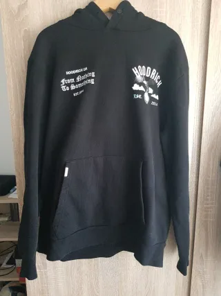 Sudadera con capucha y bolsillo frontal. - Diseño con estampado HOODRICH UK y FROM NOTHING TO SOMETHING en la parte delantera izquierda. - Estampado HOODRICH con diseño de ave y EST. 2014 en la parte delantera derecha. - Detalle de etiqueta blanca en el bolsillo. Tiene el botón del cuello descosido pero por lo demás todo perfecto