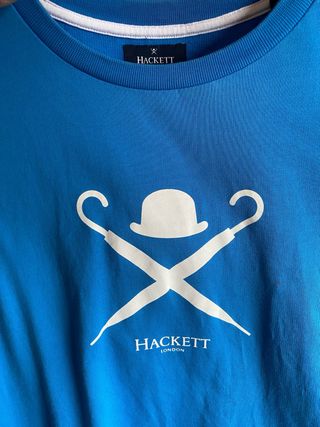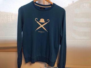 Sudadera con un diseño distintivo de Hackett. El color real es de la primera foto - Estampado frontal con paraguas cruzados y bombín. - Logo de Hackett London. Talla 13 - 14 años o 38 Hombre o mujer Producto Unisex