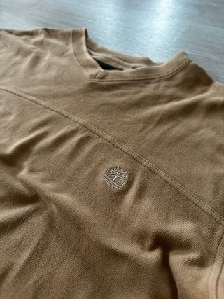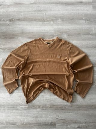 Sudadera Timberland de manga larga en color marrón. Presenta un diseño clásico con cuello en V y un pequeño logo bordado en el pecho. - Cuello en V. - Manga larga. - Logo bordado.