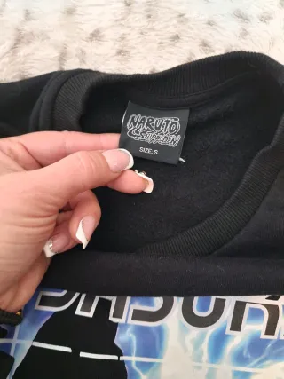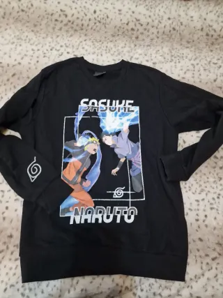 Sudadera negra con estampado de Naruto y Sasuke. - Diseño frontal con los personajes. - Símbolo de Konoha en la manga. - Cuello redondo.