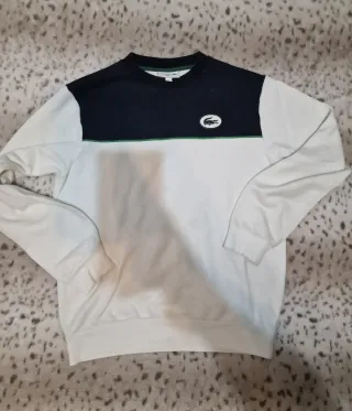 Sudadera de cuello redondo con diseño bicolor y detalles de color. - Panel superior en azul marino. - Raya verde decorativa. - Logo de cocodrilo bordado.