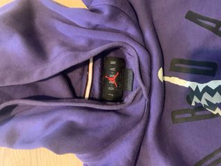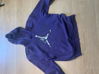Sudadera con capucha de Jordan en color morado. Presenta un diseño llamativo en el frontal. - Logo de Jordan estampado. - Bolsillo tipo canguro.