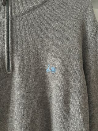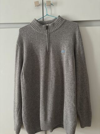 Sudadera de punto Scotta, material Lana - Color gris - Detalle de logo bordado en azul claro en el pecho. Precio negociable