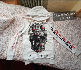 Algodon gordito. Cristales en muy buen estado. Edicion limitada y autentica Tony Montana con lema de Al Pacino en Scarface: Money & Power y Calavera. Talla XS...pero da hasta una M...medidas:Largo 75cm. Contorno pecho 100cm. Manga 61cm . Buen estado tejido. Entrego Madrid, zona metro Ciudad los Angeles L3. Envío Wallapop estampado de calavera y billetes. - Mangas con texto y detalles gráficos. Capucha con cordones.