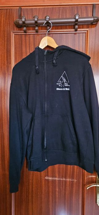 Sudadera con cremallera frontal y capucha, perfecta para actividades al aire libre. Presenta un diseño gráfico en el pecho. Da poca talla. Vale para S. - Cierre de cremallera completo. - Bolsillo tipo canguro. - Capucha con cordones ajustables. - Logo de escalada en el pecho.