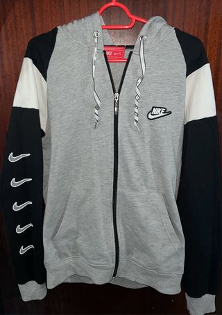 Sudadera con capucha y cremallera completa Nike original. Venta en persona por 10€!!! Si es con envío 15€ Como nueva también a buen precio que no se te escape la oportunidad y cómprala ya! ⭐️ - Diseño con paneles de diferentes colores en mangas. - Logo de Nike bordado en el pecho. - Múltiples logos de Nike en la manga izquierda. - 100% algodón.