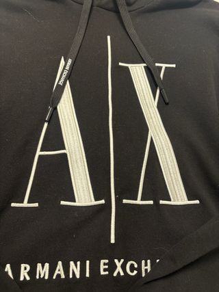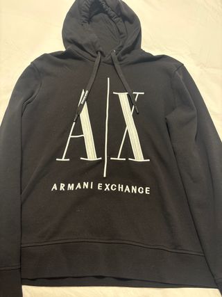Sudadera con capucha de Armani Exchange. Puesta en una sola ocasión, para unas fotos. - Diseño frontal con logo AX. - Cordones ajustables en la capucha. - Bolsillo tipo canguro.
