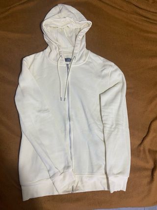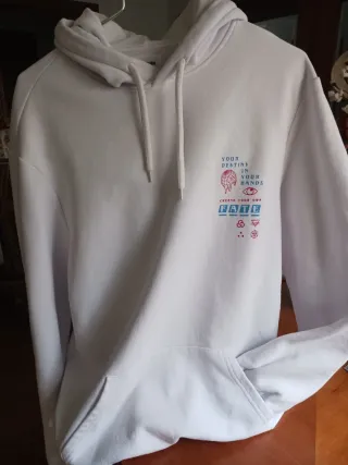 Sudadera con capucha de la marca Fear None. - Diseño bicolor en blanco y beige. - Bolsillo frontal tipo canguro. - Mangas largas. - Puños y bajo elásticos. (Contactar antes de realizar la compra, Solo entrego en persona o envío por Correos.)