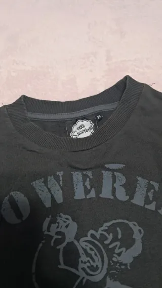 Sudadera de la marca Polinesia en color gris. - Diseño circular con texto alrededor. - Estampado frontal. - Con capucha. - Perfecto estado