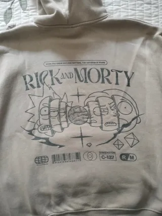 Sudadera con estampado de Rick & Morty. - Diseño con personajes de la serie. - Detalle de logo RM en manga. - Estampado de código de barras en otra manga. - Símbolo circular en la otra manga.
