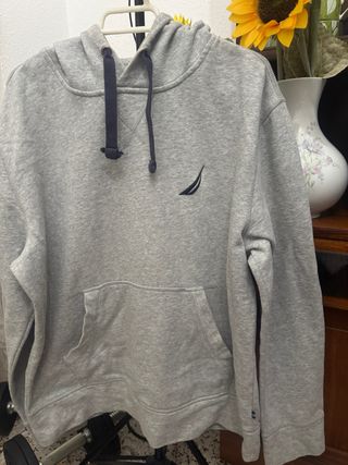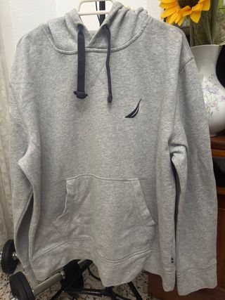 Sudadera con capucha de la marca Nautica. - Color gris jaspeado. - Logo de la marca bordado en el pecho. - Bolsillo tipo canguro. - Cordones en la capucha.