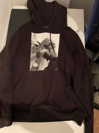 Sudadera con capucha y estampado de Tupac Shakur. - Diseño frontal con imagen icónica. - Bolsillo canguro. - Puños y cintura elásticos.