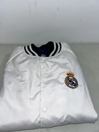 Chaqueta del Real Madrid con un diseño deportivo y moderno. Ideal para los aficionados del equipo. - Cierre de botones a presión. - Cuello y puños elásticos. - Forro interior acolchado.