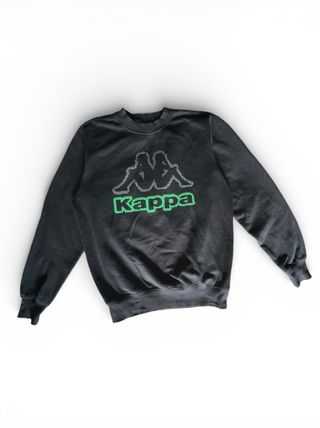Sudadera Kappa original en color negro, talla M. Logo frontal grande con detalle en verde y diseño icónico de la marca. ✔️ Talla: M ✔️ Color: Negro ✔️ Estado: Buen estado, sin rotos ni manchas ✔️ Interior afelpado, muy cómoda ✔️ Unisex Perfecta para outfit casual o deportivo. Marca reconocida y muy combinable.