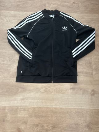 Sudadera deportiva Adidas Originals. - Diseño clásico con las tres rayas blancas en las mangas. - Logo de Adidas bordado en el pecho. - Cremallera completa. - Bolsillos laterales.
