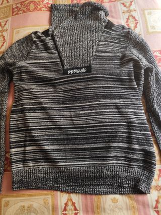 Jersey de punto para hombre de la conocida marca Desigual. Presenta un diseño jaspeado en tonos grises y blancos, con un tacto suave. Cuello con cremallera adoptando diversas presentaciones.