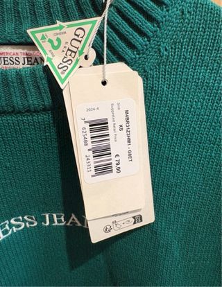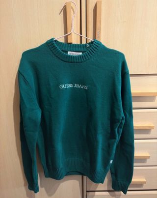 Jersey de punto de la marca Guess Jeans en color verde. - Diseño clásico con cuello redondo. - Logo de Guess Jeans bordado en el pecho. - Puños y bajo acanalados.
