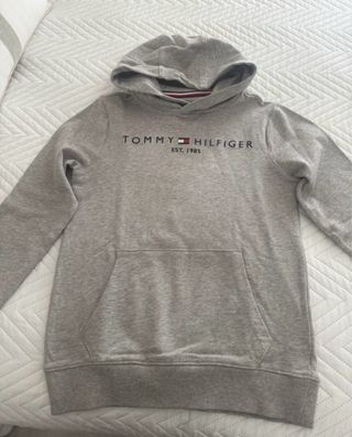 Sudadera con capucha para niño de la marca Tommy Hilfiger. - Talla 152. - Color gris. - Logo de la marca en el pecho. - Bolsillo canguro delantero.