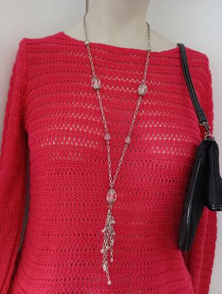 Jersey de manga larga en tono rojo. - Diseño de punto fino. - Cuello redondo. - Corte cropped.