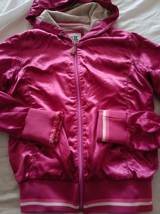 preciosa sudadera en raso color rosa fucsia con gorro