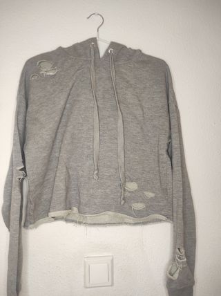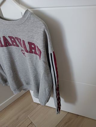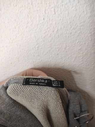 Conjunto de prendas variadas, en buen estado, como nuevo. Incluye: - 1 Sudadera gris corta, de manga larga. Con el logo Brooklyn USA. 58% algodón, 41% poliéster. Talla S. Bershka - 1 jersey de color gris claro, talla S. De H&M -1 camisa a cuadros, Bershka. + Una chaqueta de color azul oscuro, con botones. - 1 pantalón de verano, con un bolsillo lateral. - un par de medias de futbol, negras y blancas. Nuevas. Son de varios colores. Perfecto para añadir a tu armario de invierno y verano. Prendas a 5€. Medias por 2€