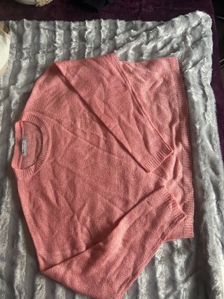 Jersey de punto fino en color rosa. Una prenda cómoda y versátil. - Manga larga. - Cuello redondo. - Tejido ligero.