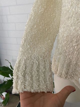 Jersey de punto con un diseño elegante. - Cuello amplio y escotado. - Detalle de encaje en la parte delantera. - Mangas largas con puños acanalados. talla s y M