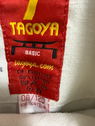 Kimono de artes marciales TagoYa en color blanco. - Diseñado para alturas de hasta 120 cm. - Cierre con cintas.