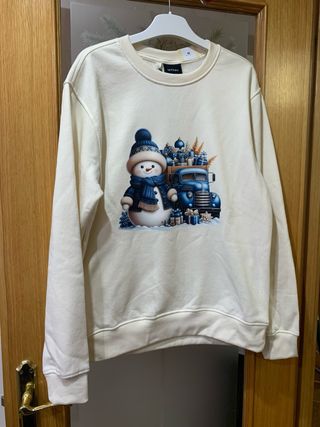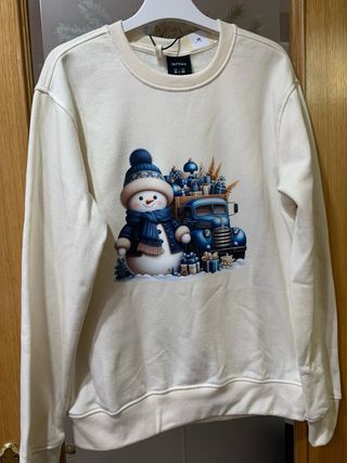 Sudadera blanca con un divertido estampado navideño de un muñeco de nieve hecha por mi. nueva a estrenar