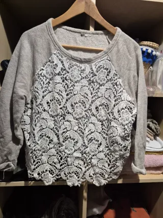 Jersey gris con encaje blanco